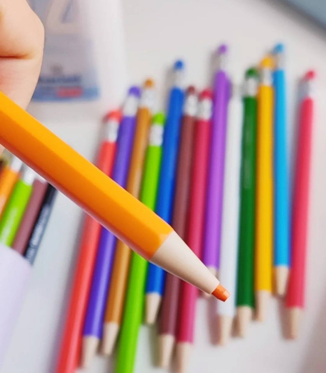 با فشار دادن سر مداد رنگیا نوک بیرون میاد و با تراشی که داخل جعبه هس میتونید مداد رنگیا رو بتراشید.